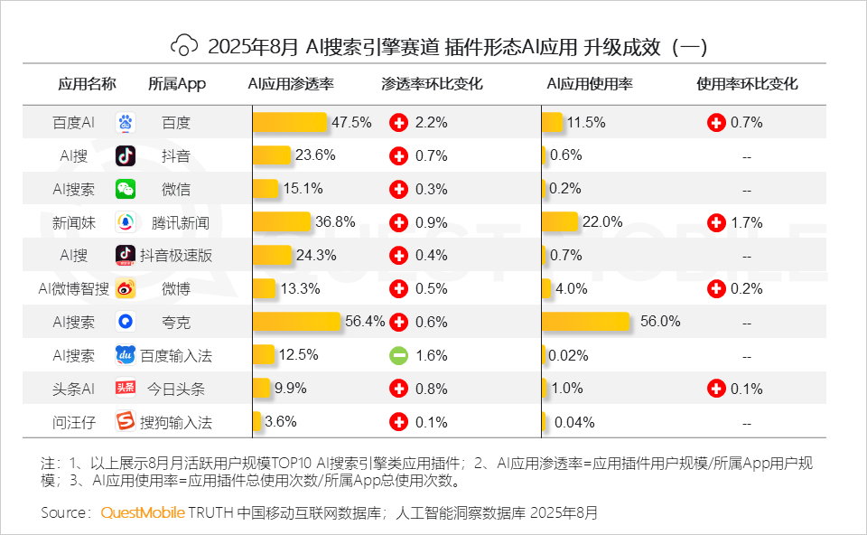 1、2025年8月,3、赛道双寡头款式不变;AI搜刮仍未呈现成功的贸易案例,从当下的合作态势上来看,